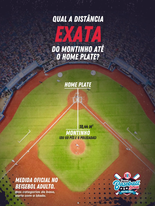 8,44 metros separam o pitcher do home plate no beisebol adulto. Nas categorias de base, essa distância muda conforme a idade.